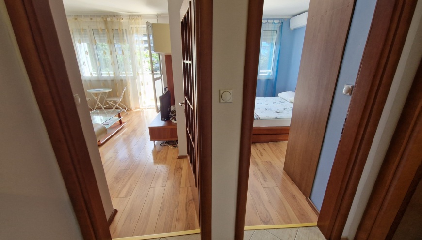 Sastoji se od dvije spavaće sobe, kupatila, kuhinje, dnevnog boravka sa kuhinjom i trpezarijom i terasom južno okrenutom.