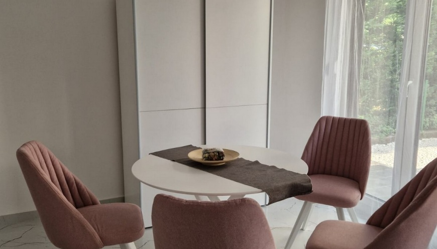 Kompletno je opremljen modernim namještajem i savremenom bijelom tehnikom.